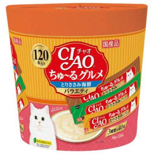 챠오츄르 구루메 고양이 간식 120p, 혼합맛(닭가슴살/해산물) × 1.68kg × 1세트
