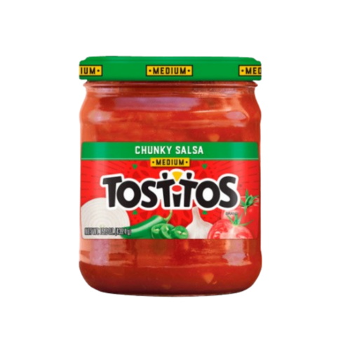 이 소스에는 큼직하게 썰린 토마토, 할라피뇨, 양파 조각이 들어 있어 씹는 재미와 신선한 맛이 더해져 있답니다.