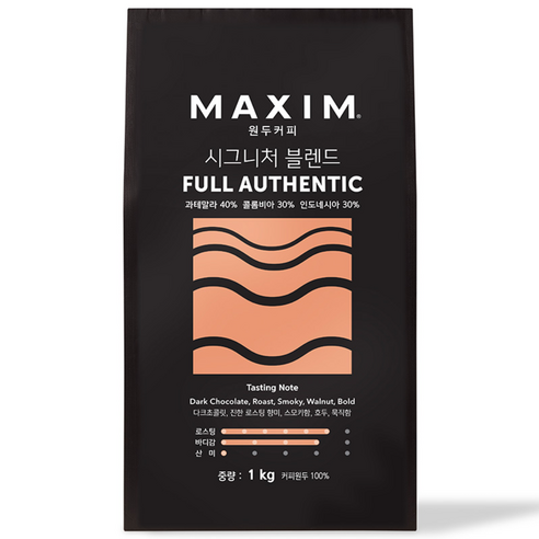 맥심 원두커피 시그니처 블렌드 풀 어센틱, 홀빈(분쇄안함), 1kg는