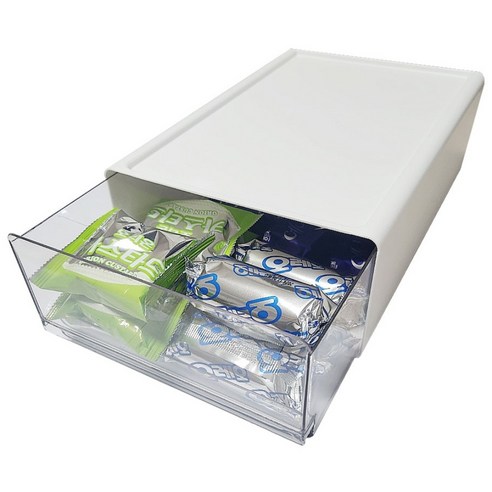 외관이 깔끔하고 손잡이도 있어서 선반에 넣어두고 쉽게 꺼내서 사용할 수 있어요. 아이들도 손잡이를 잡고 안에 있는 간식을 꺼내 먹는 게 편리합니다.
