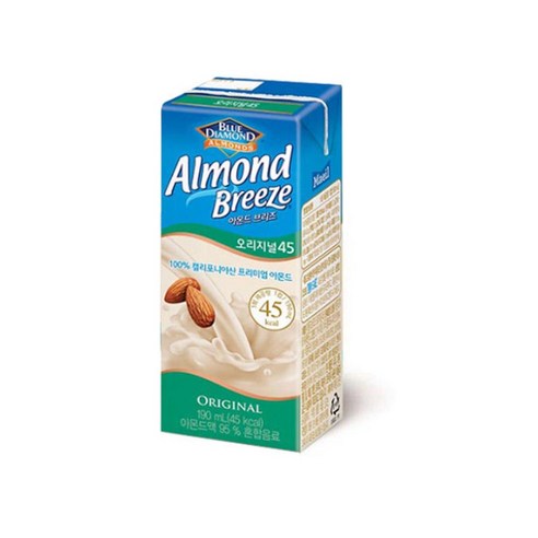 언스위트 제품의 190ml(종이팩에 든 작은 사이즈) 기준으로 했을 때 아몬드 브리즈는 35kcal의 낮은 열량을 가진다.[2] 또한 1일 영양소 기준치 89%에 해당하는 비타민E와 31%에 해당하는 칼슘이 들어가 있다. 칼로리가 낮으므로 다이어트를 해보고 싶다면 권장할 만하다. 다만 저칼로리인 만큼 영 밍밍한 맛을 가지는데, 덜 진한데 약간 고소한 두유 수준. 특유의 향 또한 진입 장벽이 꽤 높은 편이니, 적응을 못하겠다면 차라리 그냥 두유나 오트 밀크를 선택하는 것이 좋다.