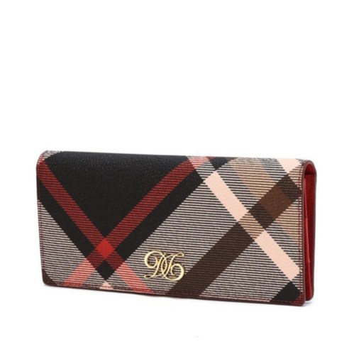 닥스 여성 레드 천연 소가죽 체크 가죽 2단 장지갑
