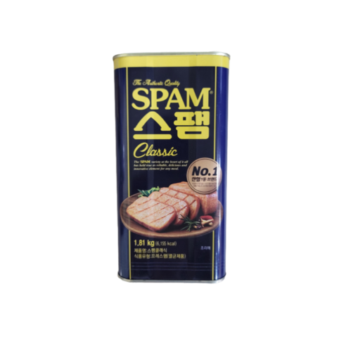 이 제품은 미국 호멜사가 만든 스팸으로, 한국인의 입맛에 맞게 재가공된 제품입니다.