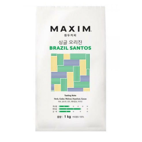 ☑️제품명: 맥심 싱글 오리진 브라질 산토스 원두커피, 홀빈(분쇄안함), 1kg, 1개
