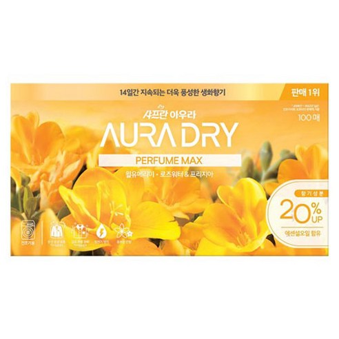드라이시트 형태로 건조기 사용 시 간편하게 투입할 수 있어 편리합니다. 또한, 시트 한 장으로 충분한 향과 부드러움을 제공하여 사용량을 조절하기도 수월합니다.