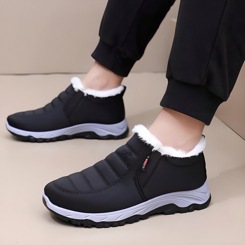 DarjinQD 남성 겨울 미끄럼방지 패딩 방한화 기모 털 따뜻한 발편한 슬립온 키높이 발편한 스니커즈 스노우 부츠 BM808