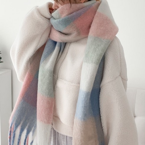 블루씨티 크림 스퀘어 체크 롱 머플러 목도리