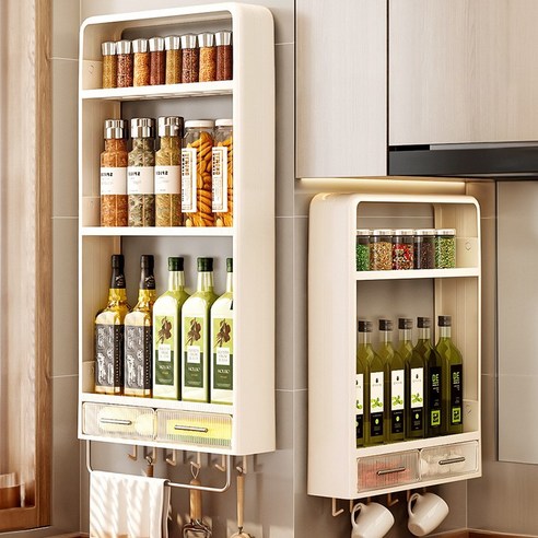 이 선반은 다양한 주방용품을 한꺼번에 정리할 수 있는 기능을 제공합니다. 냄비, 후라이팬, 양념통과 같은 주방 도구들을 깔끔하게 보관할 수 있습니다. 또한, 그릇이나 접시를 거치대로 활용하여 공간을 절약할 수 있습니다. 이를 통해 주방 공간을 효율적으로 활용할 수 있습니다.