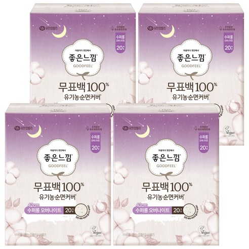 좋은느낌 피부에 직접 닿는 무표백 유기농순면 생리대 날개형, 오버나이트, 20개입, 1개