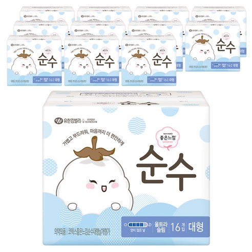 좋은느낌 순수 울트라 슬림 생리대 날개형, 대형 × 16매 × 6개