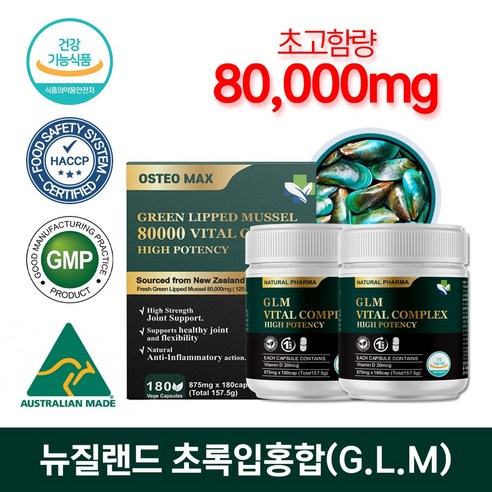 뉴질랜드산 초록입홍합: 초록입홍합은 관절 건강에 좋은 성분으로 잘 알려져 있으며, 관절염, 연골 보호 등 관절 기능 개선에 도움을 줍니다.
