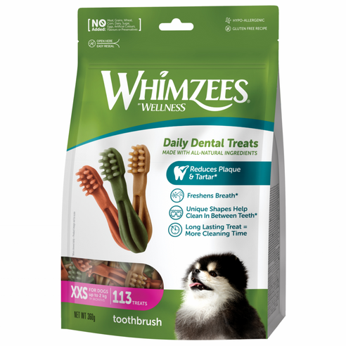 The Wellness Whimzees Natural Dental Chews XXS is an effective and safe product for small dog dental health.