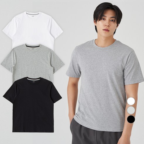 면티백서 순면 남녀공용 라운드 반팔 티셔츠 화이트 3장 세트 이너 반팔티 3P, M