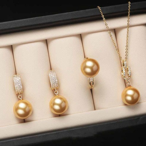 FANSYLI 쥬얼리세트 조개 담수 진주 세트 쥬얼리 쓰리피스 여성 패션 목걸이 펜던트 반지 귀걸이 생일 명절 선물 W2405M10