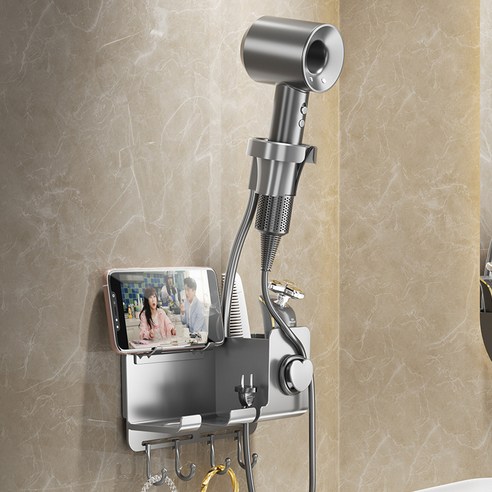 드라이랑 빗을 욕실에 거치할수 있고 드라이 사용시엔 자바라로 각도도 조절하며 사용가능