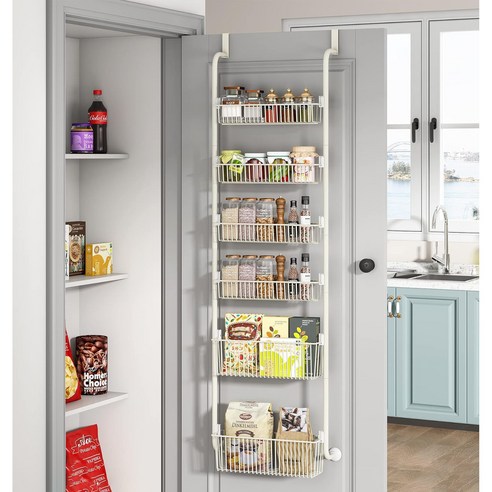 모던마켓 홈 수납 무타공 주방 욕실 멀티 도어선반 2가지 사이즈 바구니있는 철제 공간활용 문걸이 수납선반 문에 걸이는 튼튼한 틈새 수납 문선반
