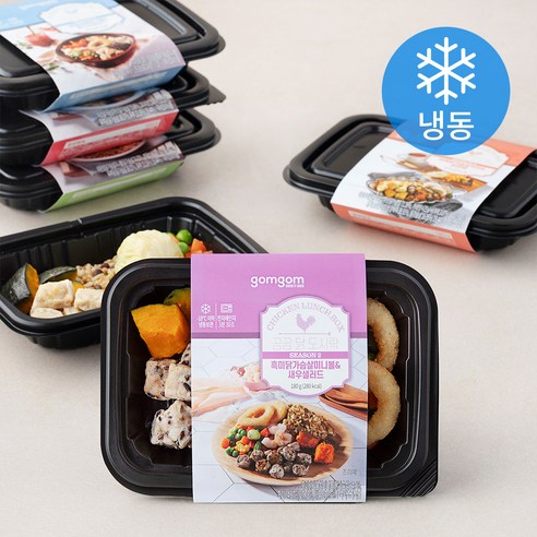 소고기, 닭가슴살, 스리라차닭, 쉬림프, 단호박 이렇게