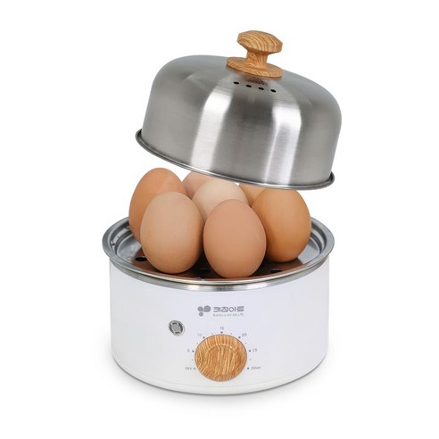 시간설정 타이머가 다이얼방식으로 되어있으며, 1,2단 분리사용가능하고, 계란을찔경우 7분 미완숙부터 15분 완숙까지 찔수있습니다.