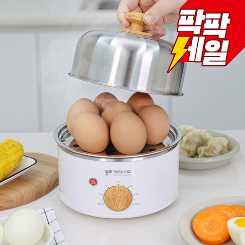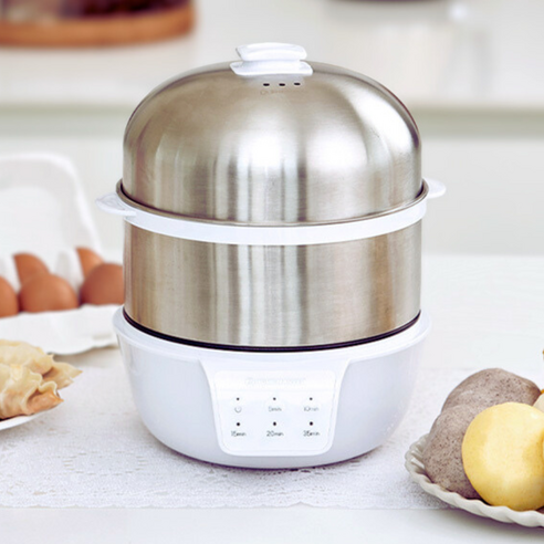 보통 1단으로 되어있는 찜기에 비해 2단이라 활용도도 더 높으며 1-2단 모두 사용시 계란14개 까지 찔수있습니다.