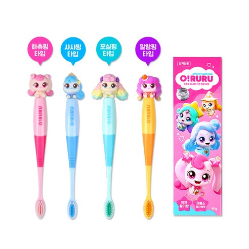 칫솔의 길이,두께,칫솔모의 크기 등이 달라지는데 그려진 동물도 토끼,고양이,강아지로 달라지고 색이 미세하게 연분홍~진분홍.연두색~초록 등으로 살짝씩 달라질 뿐