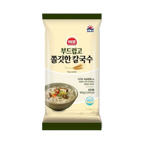 진한 국물 맛과 쫄깃한 면발이 일품인 냉동 칼국수에요.