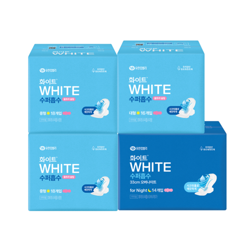 화이트 수퍼흡수 울트라슬림 생리대 날개형 중형 18p x 2팩 + 대형 16p + 오버나이트 14p