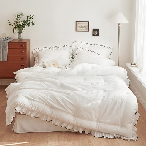 심플하면서도 포인트가 되는 디테일 덕분에 침실 분위기를 한층 더 아늑하고 감각적으로 만들어줍니다. 이불과 베개커버가 세트로 구성되어 있어 전체적인 스타일링에 신경 쓴 분들에게 좋은 선택이 될 것 같습니다.