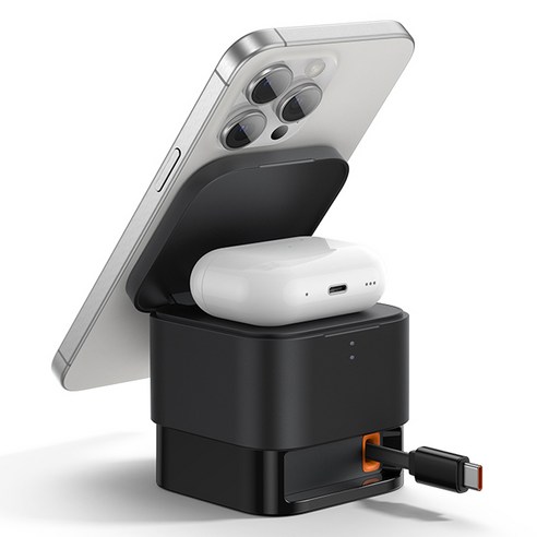 우선, 15W 고속 충전이 가능해서 스마트폰 충전 속도가 상당히 빠릅니다. 예전에 쓰던 일반 무선 충전기보다 체감 속도가 훨씬 빨랐고, 동시에 2개의 기기를 충전할 수 있어 활용성이 뛰어났어요. 아이폰과 에어팟을 동시에 충전할 수 있어서, 따로 충전기를 여러 개 챙길 필요가 없었고, 책상 위도 훨씬 깔끔해졌어요.