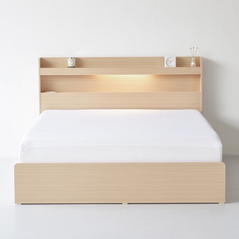화이트 컬러의 깔끔한 디자인으로 다양한 인테리어와 조화를 이루며, 헤드보드에 장착된 LED 조명은 아늑한 분위기를 연출해줍니다.