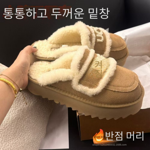 호주 어그슬리퍼 여성 겨울 사무실 천연 양털 시어링 통굽 플랫폼 슬리퍼 신발 드림메리노