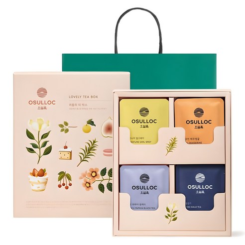 일단 패키지가 깔끔하고 고급스러워서 선물용으로 딱이에요. 다양한 맛(녹차, 홍차, 허브 등)으로 구성돼 있어 취향 상관없이 누구나 만족할 수 있고요. 티백 하나하나 개별 포장돼 있어 보관이나 휴대도 편리해요. 오설록답게 향과 맛도 깔끔하고 깊어요.