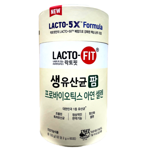 장유산균 장건강 종근당 락토핏 생유산균 팜 2g x 60포 프로바이오틱스 아연 셀렌 120g, 2개