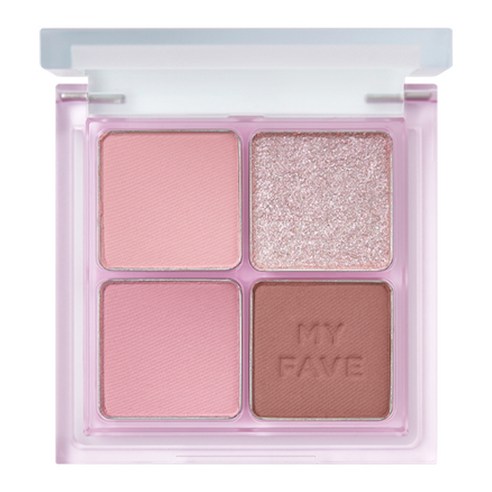 -컬러 구성: 피치 톤을 기본으로 한 매트, 쉬머, 글리터 섀도우가 조화롭게 구성되어 있습니다.