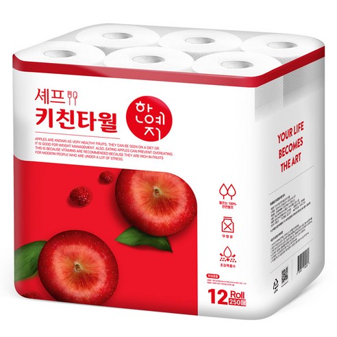 한예지 셰프 천연펄프 키친타올 250p 12롤, 1개