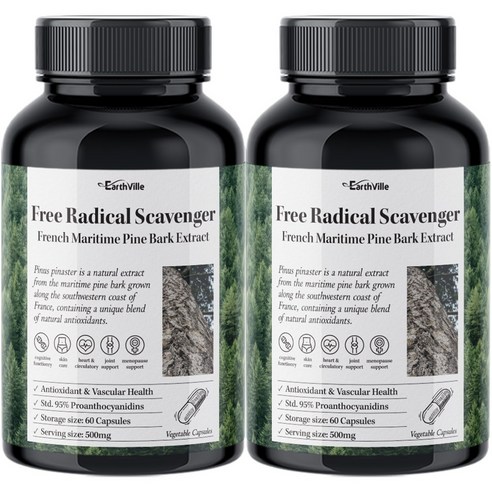 어스빌 프랑스해안송소나무껍질 추출물 500mg 프로안토시아니딘 폴리페놀 베지캡슐 60정, 2개