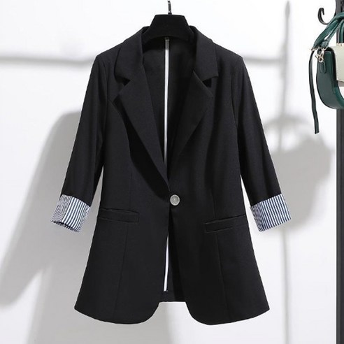 구디프 여성용 배색 소매 원버튼 자켓