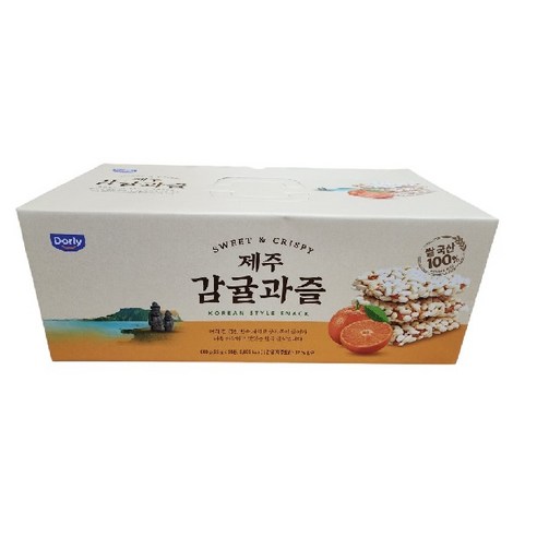 예전 제주도 호텔 웰컴쿠키로 처음 만났다가 한참만에 제주도 다녀온 지인한테 선물받아 먹고는 자주 사먹는 과자예요. 일단 쌀뻥튀기 붙어있고 중요한건 가운데 있는 기름에 튀긴 유과인데 이게 겹이 있고 바삭해서 맛있어요. 귤향이 아주 살짝 나지만 모르고 먹으면 그냥 물엿맛이지만 전체적인 단맛이 은은해요. 엄마한테 한봉 드렸더니 맛있게 드셨는지 마트에 사러 갔더니 없더라는... 엄마네도 가끔씩 보내드리고 있어요. 하나만 먹어도 든든해서 끼니 애매할때나 출출할때 좋아요. 뭐 어쩔 수 없지만 이에 약간 붙긴해요. 음료와 함께하면 괜찮구요. 다른건 안먹어봤지만 비슷한게 많더라구요. 이걸로 잘 보고 사세요. 가격변동이 잦지는 않아요. 저는 보다가 한봉(10개입) 7천원정도면 쟁입니다.