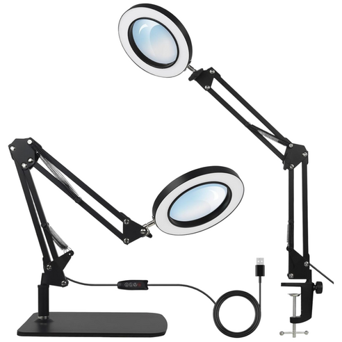 CROTOLO 5배 고배율 조명 확대경 조절 가능한 암 스탠드 중형 2-in-1 금속 베이스 네일아트 및 공예 등 다양한 용도
