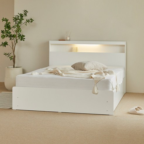 보니애가구 문스테이 LED조명 수납침대+ 매트리스 세트 방문설치 화이트