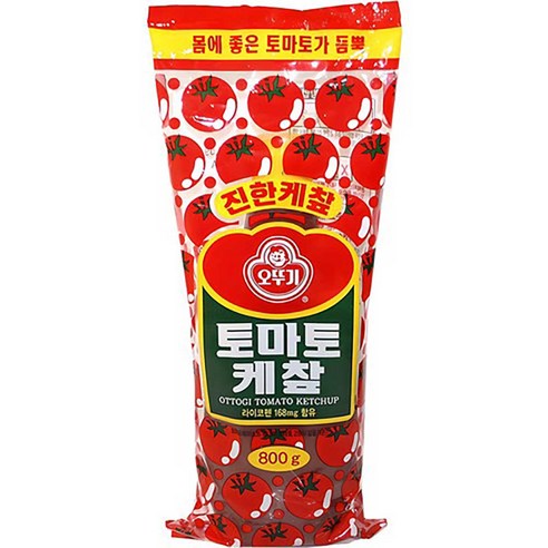 케챂 특성상 너무 묽게 나오면 흐르거나 너무 되면 자칫 짤 수도 있는데 오뚜기 케챂은 딱 중간에 있는 적절한 제품입니다. 꾹 눌러서 짜도 흐르지 않아서 편리해요. 음식 위에 뿌려 먹을 때도 조화롭게 잘 어우려져서 부드럽고 좋습니다.