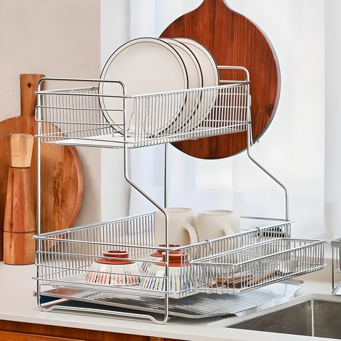 1단 구조라서 높이가 높지 않아 사용하기 편리해요. 컵, 접시, 그릇 등 다양한 식기를 올려놓기 딱 좋고, 물 빠짐도 잘 되어서 위생적이에요. 트레이 부분은 탈착이 가능해서 청소할 때도 아주 편리하답니다!