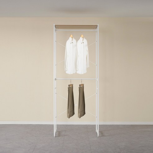 확실히 서랍장도 보다는 정리가 쉽고, 2단으로 나눠서 걸수있어서 도 많은 옷을 정리할수 있는거 같아요.