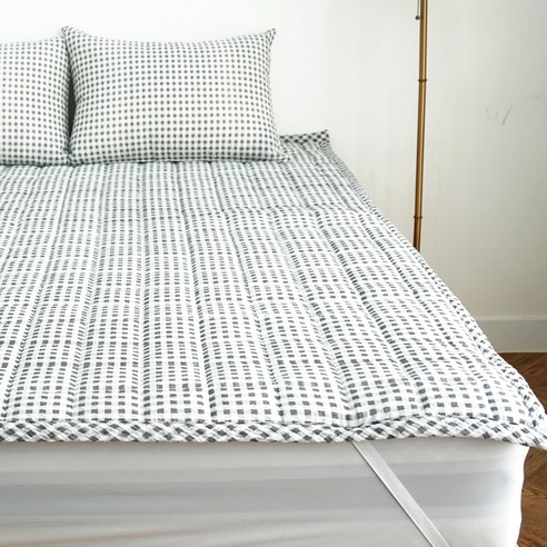 *** 바숨 고정밴드 시어서커 여름 침대 패드, 체크그레이, Q