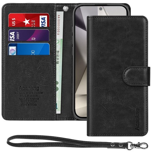 아칸크 삼성 갤럭시 A15(SM-A155N) 가죽 지갑형 스트랩 다이어리 휴대폰케이스+핸드스트랩 세트