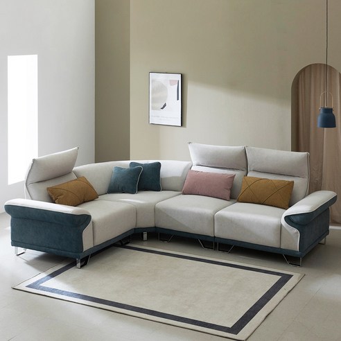 일단 거실을 생각하면 무조건 4인용 이상이어야 하는데 5~6인용은 가격대가 훨씬 올라가니 4인용만 돼도 좋겠다 했고, 팔걸이는 누웠을 때 베고 누워도 목이 안 아파야 하고, 앉았을 때 너무 푹신한 걸 싫어해서 약간 딱딱함에 가까운 푹신함?? 그런 착석감이었으면 좋겠고, 카우치도 길고 넓~게 나와 있었으면 좋겠고, 디자인도 너무 후줄근해 보이지 않는 거였으면 좋겠다. 하는 게 저희 기준이었어요.