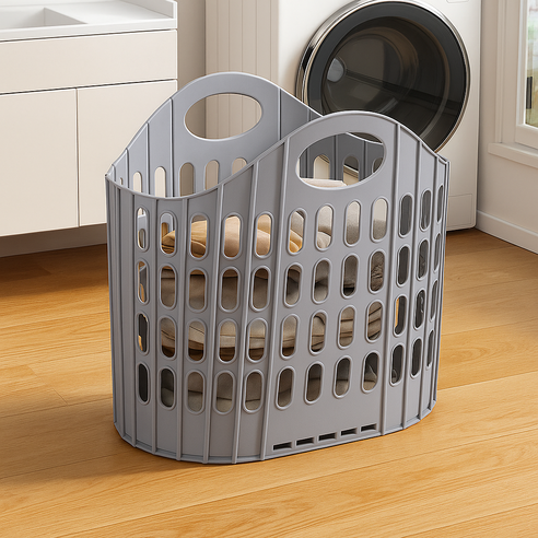 빨래바구니는 대개 패릭이거나 플라스틱이면 접히지 않아 공간을 많이 차지해서 안 쓰게 되는데