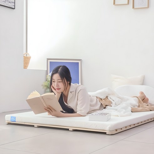 살짝 욕심나디만 바닥에서 한동안 씁니다. 간이 침대인데 프리미엄 간이 침대가 생긴 것 같아 좋아요. 남편이 침대같다며 좋아해서 저도 좋음. 프레임 두고 쓰면 더 좋겟으나