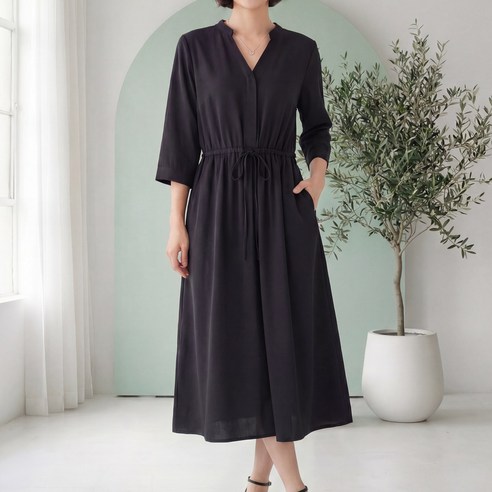 허리 부분이 살짝 여유가 있어 체형을 부각시키지 않으면서도 여성스러운 실루엣을 만들어줍니다.