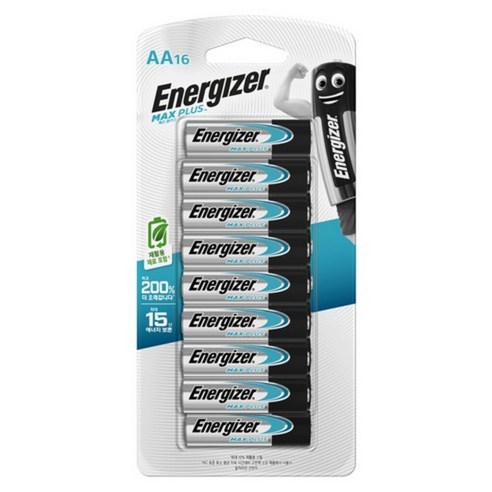 에너자이저 알카아인 전지 16개와 에너자이저 맥스 2개로 구성된 제품이에요.