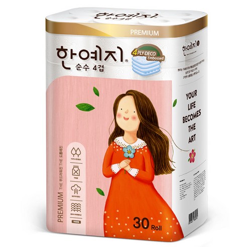 1팩에 30롤씩 들어있고 3겹에 겉면에 엠보싱처리까지 되어 있어서 가격대비로는 쓸만한 듯?? 다만 3겹치고는 다른 휴지보다 좀 얇다는 느낌이 들고 휴지가 금방 끊어져요 좀 뻣뻣하고 튼튼한(?) 그런 느낌은 없습니다